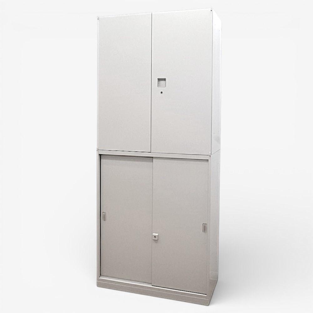 - SOLD OUT 【SALE】オカムラ ビラージュ 上下書庫セット 引き違い/ 両開き ホワイト スチールキャビネット W800 D400 H2150 中古 AG19258 配送サイズ300×2