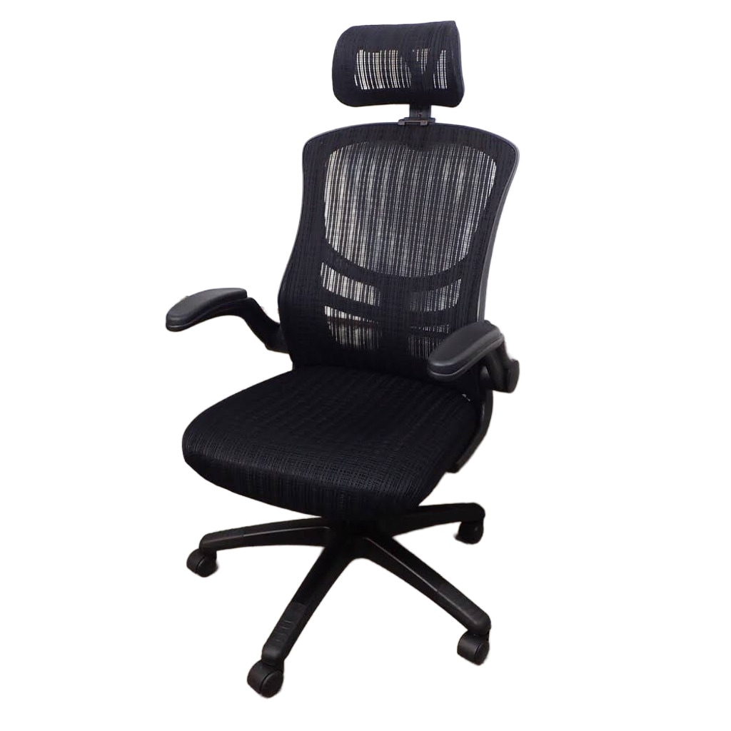 肘付きオフィスチェア ブラック ヘッドレスト 事務椅子 パソコンチェア デスクチェア ハイバック メッシュ EG15373 中古オフィス家具 配送サイズ300
