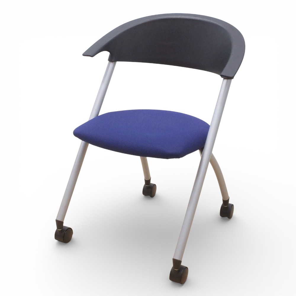 - ミーティングチェア ネスティングチェア ブルー/ブラック 肘無し KK17245 YH17245 中古 配送サイズ200