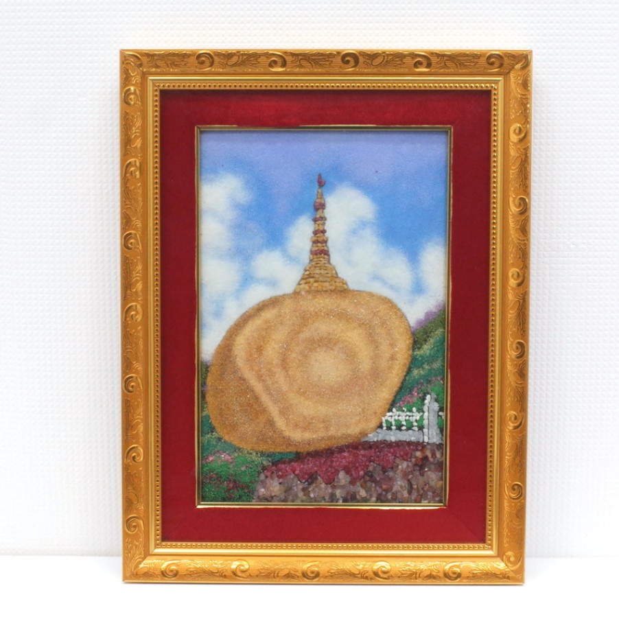 ミャンマー チャイティーヨー パゴダ アート作品 絵画 額縁 ゴールド 金箔風 観光地 ゴールデンロック 15836 中古オフィス雑貨 配送サイズ100