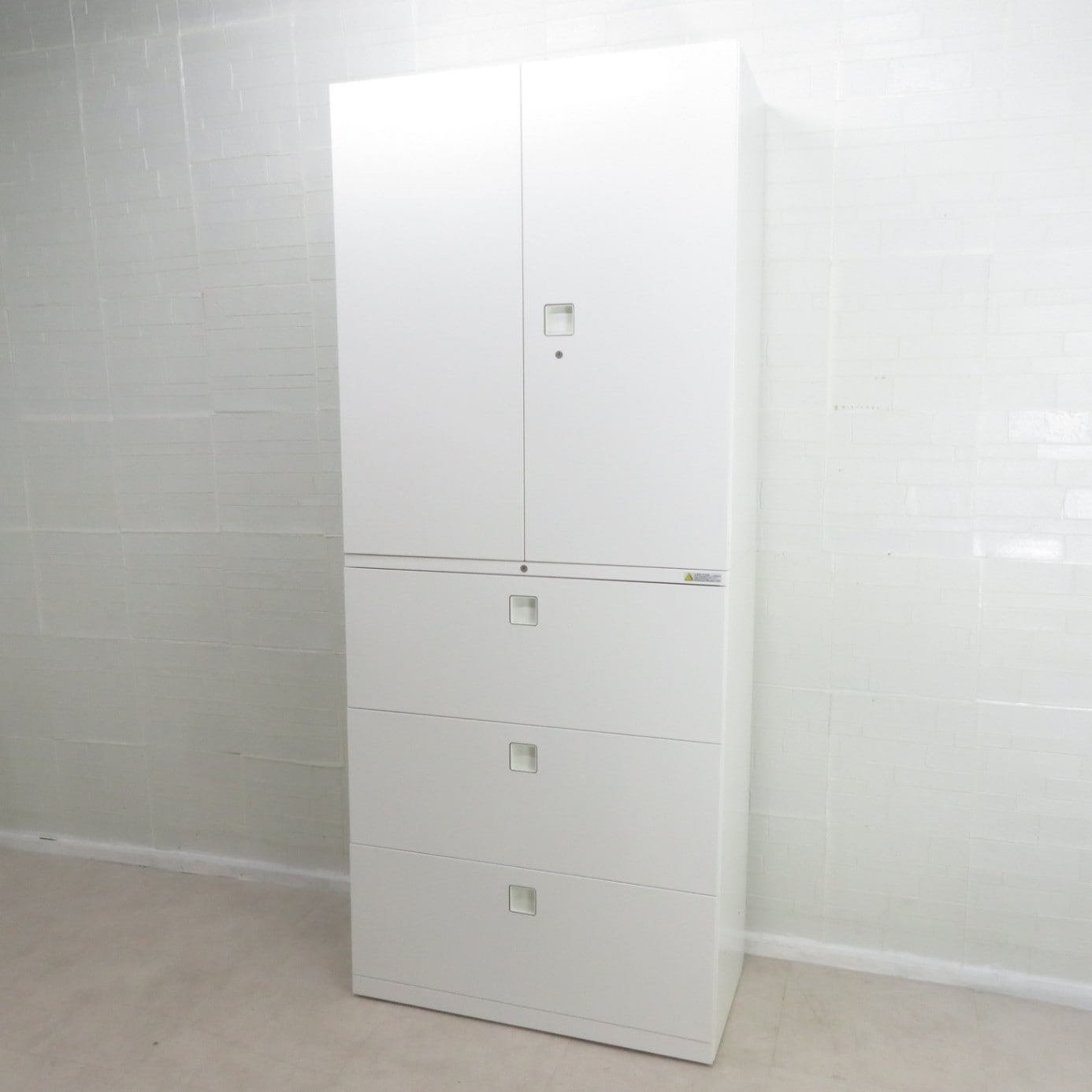 - オカムラ 上下書庫セット 両開き/3段ラテラル書庫 レクトライン 4B313Y ZA75/4BG3ZC ZA75 ホワイト オフィス家具 キャビネットAG19492 AG19908 中古