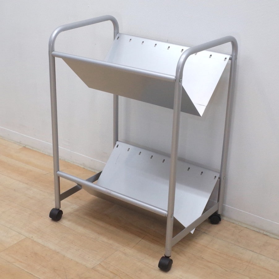 | 商品説明 | ブックラックワゴンが入荷いたしました。お色味はシルバーです。 棚に角度がついているので立ったままでも表紙が見えやすく、同時に取り出しやすい設計となっております。 1段あたり約20kgの載積量。ストッパー付きキャスターが付いているので、ファイルを乗せたままでも簡単に移動可能です。 デスクサイドに置いてファイルを整理したり、使用頻度の高い共用ファイル等を便利に保管できます。 オフィス内の書類やカタログ、書籍の保管等にいかがでしょうか。 ※写真で掲載の商品そのものが届くとは限りません。複数入荷した中の1点を掲載している場合がございます。 |