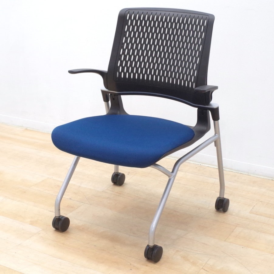 - イトーキ ネスティングチェア マノス KLC-325GB-T1N2 ネイビー 肘付き 会議椅子 セミナー キャスター 中古 AG20156 AG20435 配送サイズ220