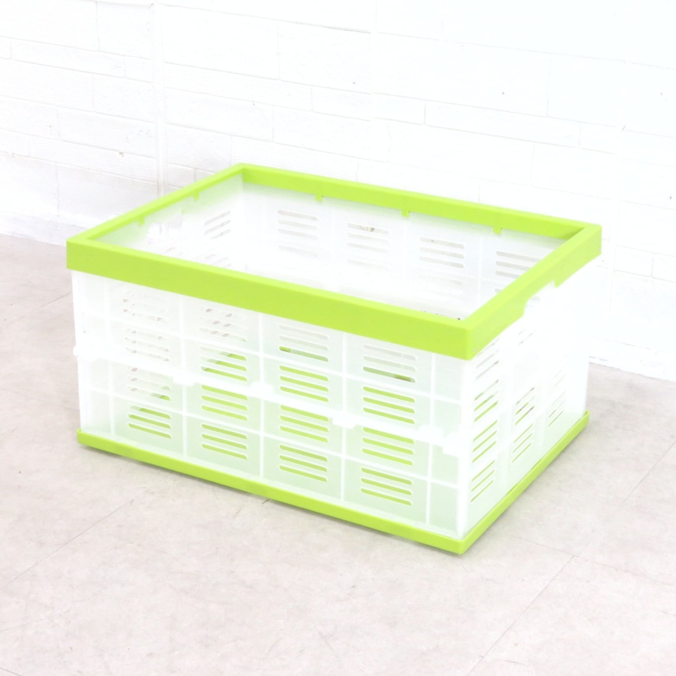 折りたたみコンテナ ライトグリーン オリコン ふた無し 48×35×25cm 収納ボックス 収納ケース フレキシブル 目盛り スタッキング 整理整頓 倉庫 片付け 卓上収納 薄型 アウトドア ガレージ AG16348 中古オフィス雑貨 配送サイズ140