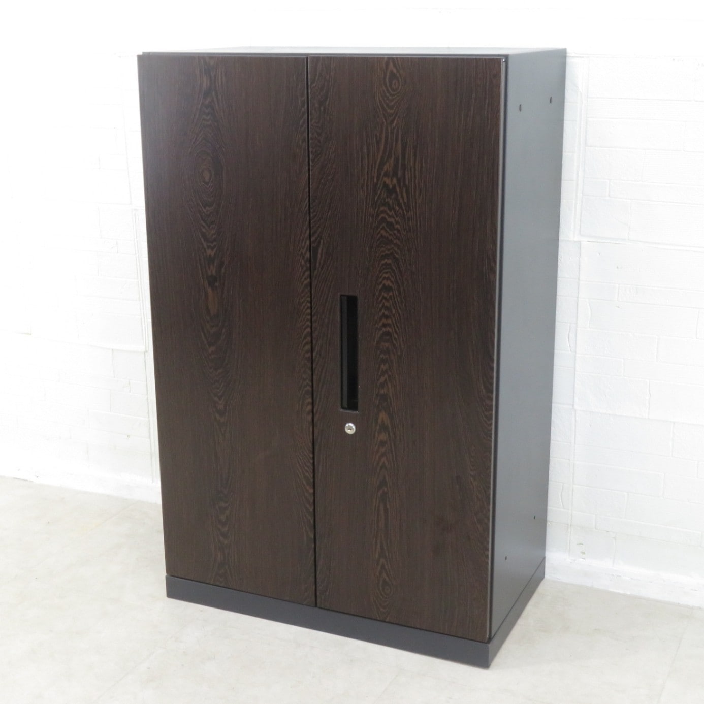 【新古品】両開き書庫 ダークブラウン観音開き キャビネット 収納庫 物置 書類棚 単体書庫 木目調 おしゃれ スタイリッシュ ワーク 事務 YH17092 中古オフィス家具 配送サイズ240