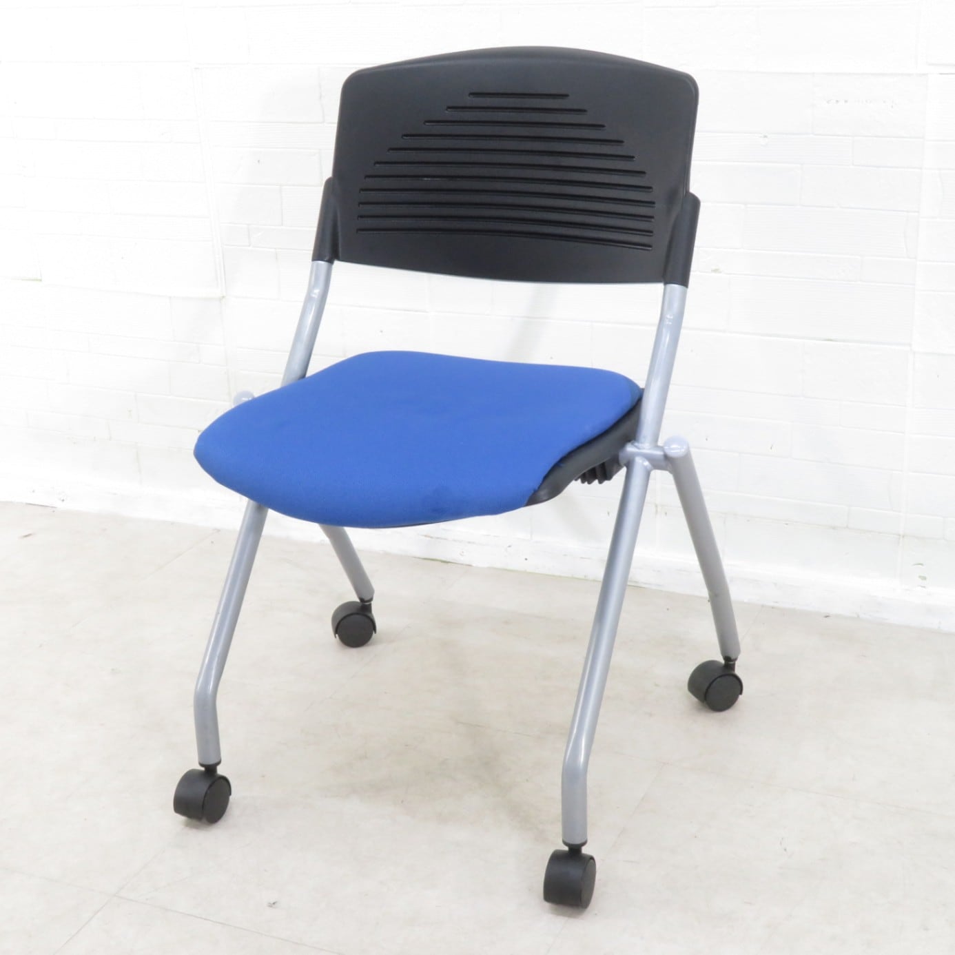 - SOLD OUT 4脚セット ミーティングチェア ネスティングチェア ブルー/ブラック 肘無 会議椅子 セミナー 講演 キャスター 多目的チェア KK17245 中古オフィス家具 セット販売