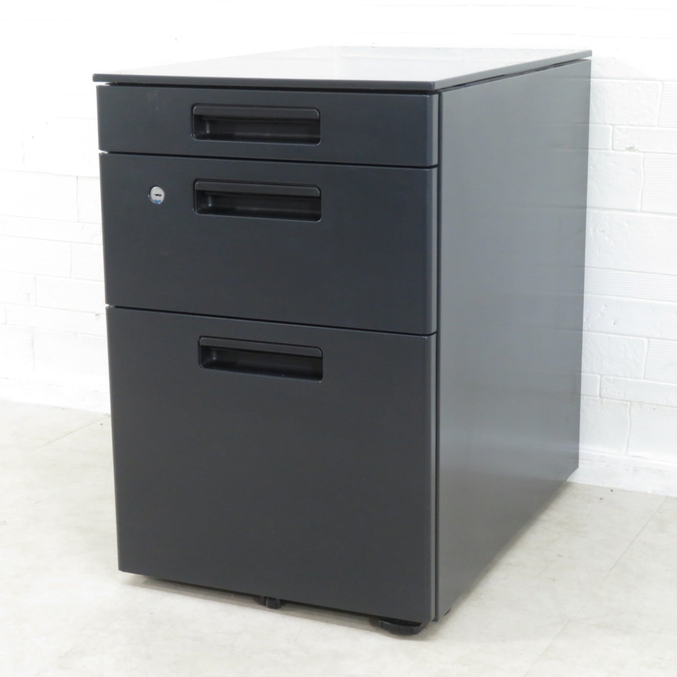 KOKUYO コクヨ 三段ワゴン SDM-GT46V3F6 ブラック 収納 引き出し サイドキャビネット キャスター ペントレー ワーク 事務 鍵有 書類 整理 EG17186 中古オフィス家具 配送サイズ180