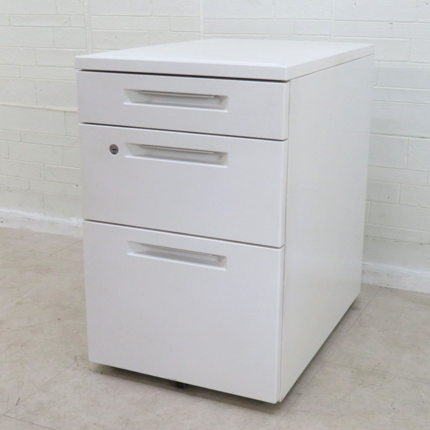 - オカムラ プロユニット DNC1CX Z975 3段ワゴン ホワイト 引き出し キャスター 鍵有り 中古 KK19597 配送サイズ180 家財おまかせ便