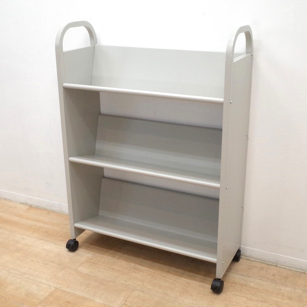 ナイキのブックカート、お色味はグレーです。 書籍やボックスファイルなどをまとめて移動できるブックシェルフ。 オープンタイプなので収納物の内容もすぐに確認でき便利! キャスターはストッパー付き、両側に取っ手付きで使い勝手も申し分ありません! 図書施設や地域センターなどにおすすめ!作業の効率化にブックカート、いかがでしょうか? |