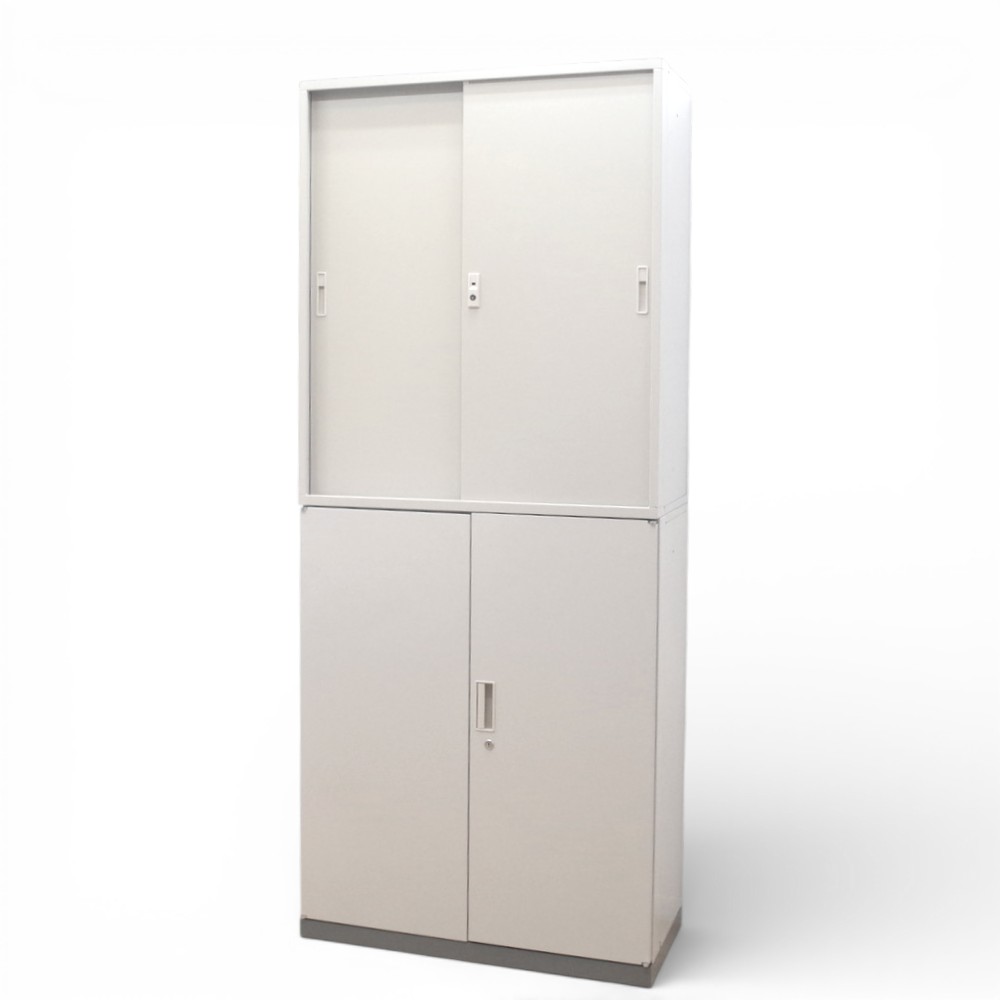 - 【SALE】オカムラ ビラージュ 上下書庫セット 引き違い/ 両開き ホワイト スチールキャビネット W800 D400 H2150 中古 AG19258 配送サイズ300×2