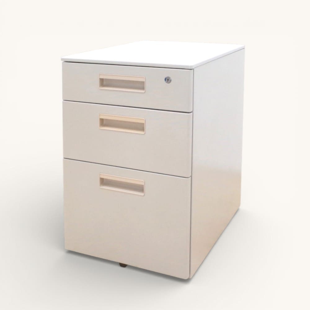 - SOLD OUT 【中古】オカムラ 3段デスクワゴン プロユニット DNC1CX Z975 ホワイト サイドキャビネット キャスター 鍵有り 袖机 中古オフィス家具 KK20809