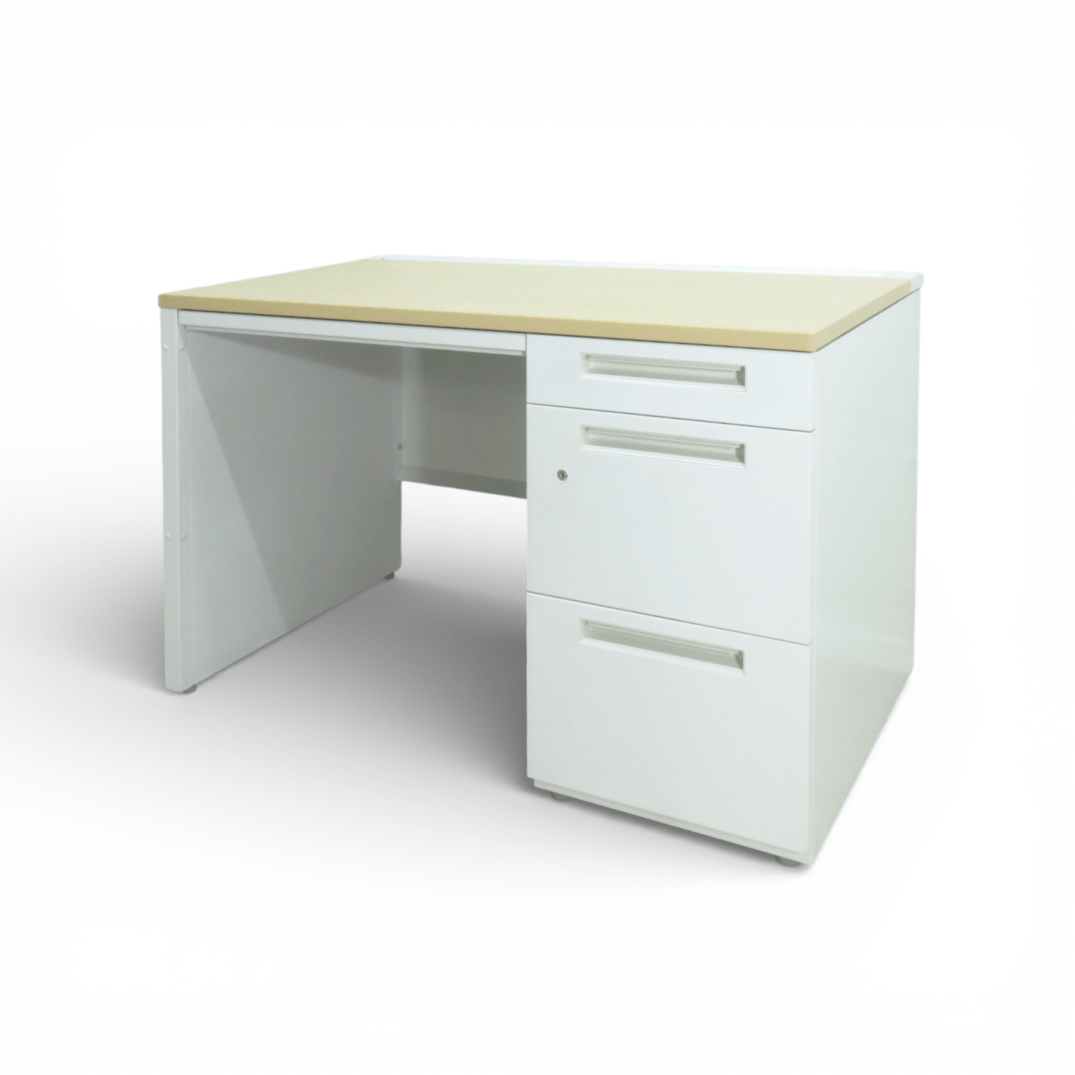 - SOLD OUT 井上金庫 片袖デスク ホワイト 引き出し付き W1200 中古 EG18610 配送サイズ300