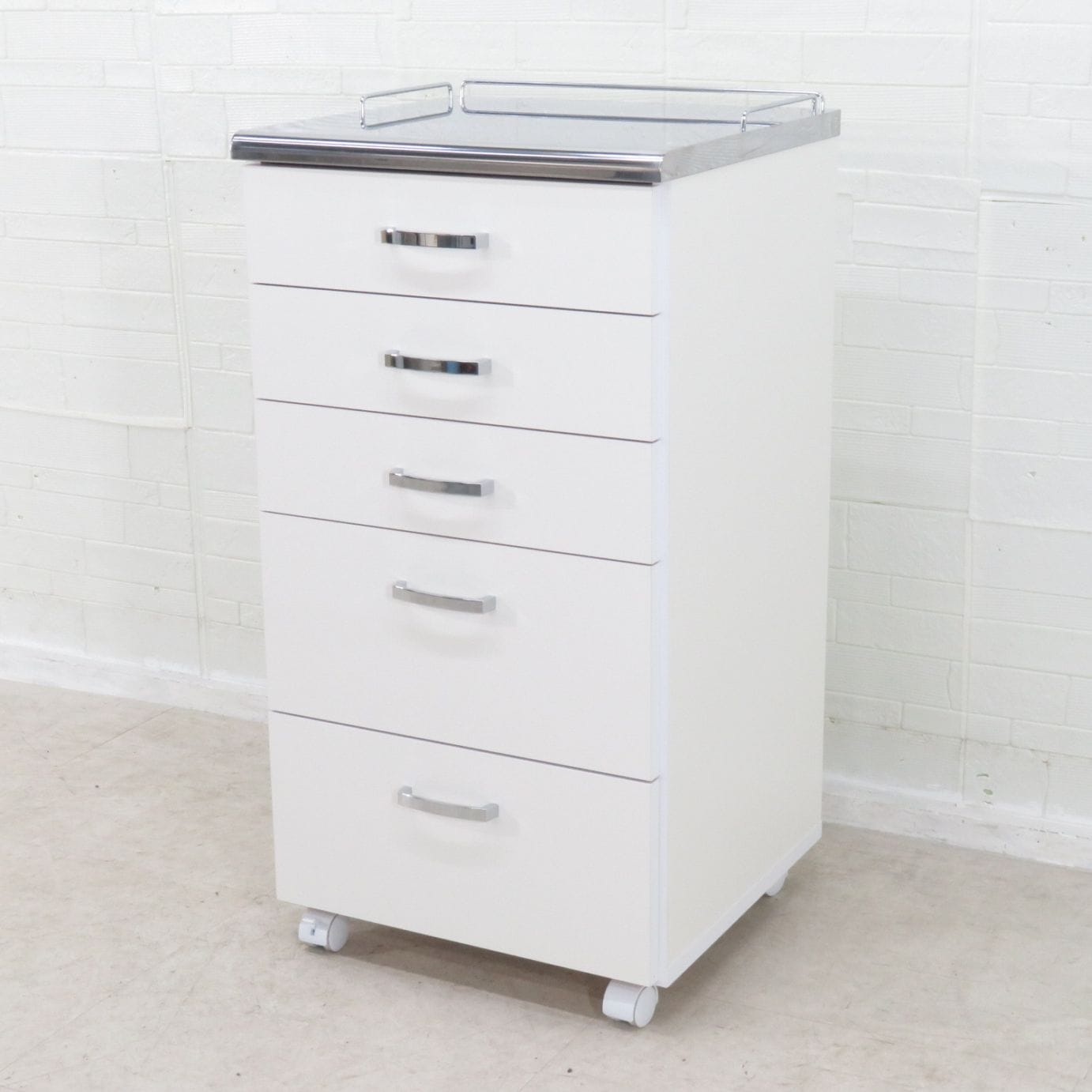 5段キャビネット ホワイト キッチンワゴン 歯科 医療施設 引き出し ステンレス天板 キャスター 収納 シンプル ワーク YH18198 中古オフィス家具 配送サイズ200