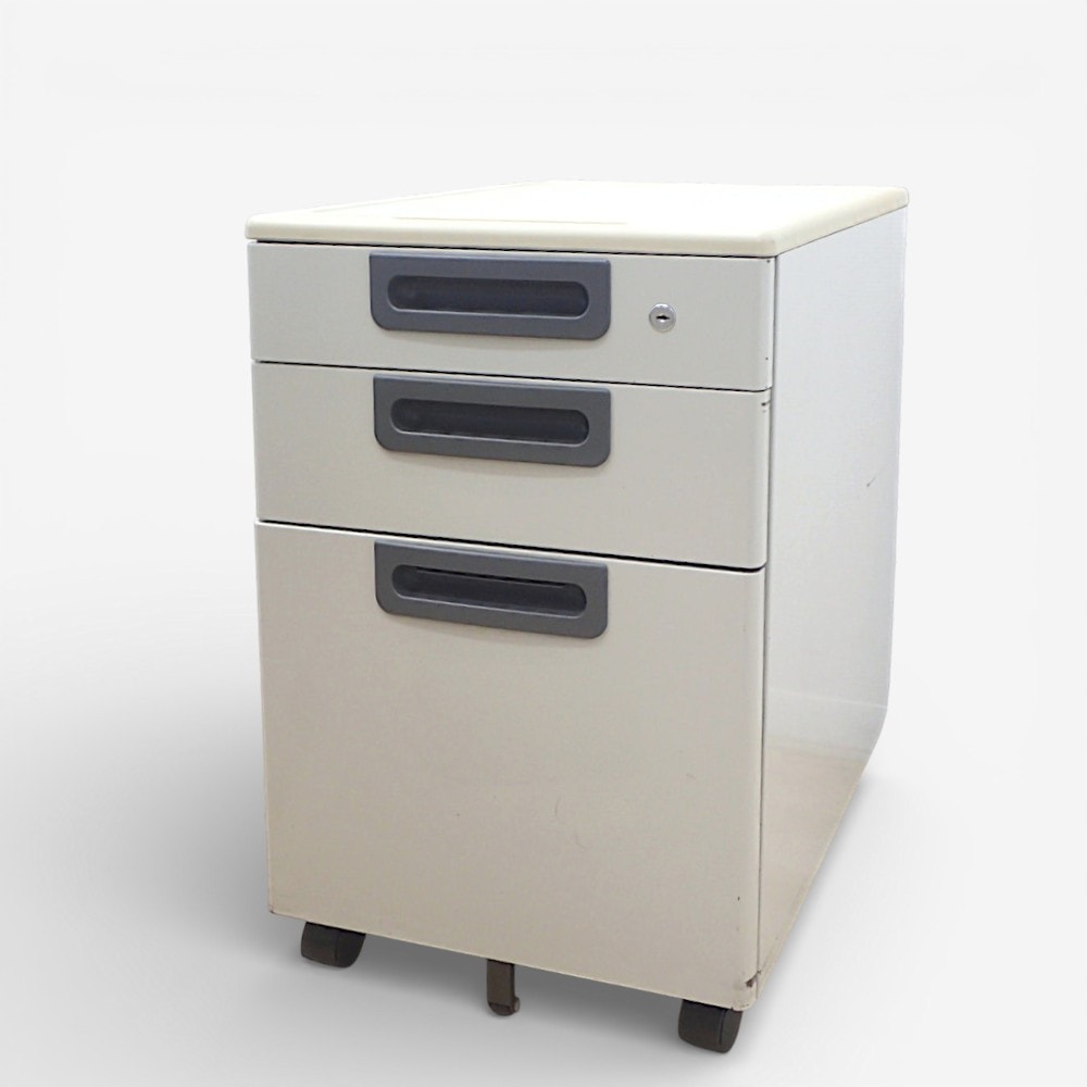 - SOLD OUT 【中古】オカムラ 3段デスクワゴン プロユニット DNC1CX Z975 ホワイト サイドキャビネット キャスター 鍵有り 袖机 中古オフィス家具 KK20809