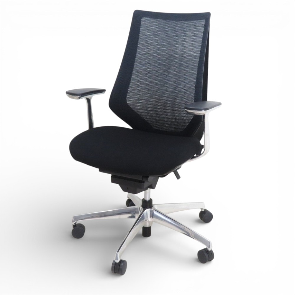 - 【中古】スチールケース 高機能マネージメントチェア ジェスチャー ブラック 可動肘付き シンクロリクライニング オフィスチェア 中古 KK20215 配送サイズ250