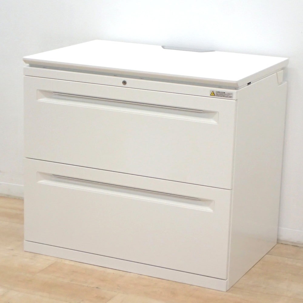 - オカムラ レクトライン キャビネット 4BG1ZC-ZA75 2段ラテラル書庫 鍵有 W900 D450 H775 白 オフィス家具 KK18711 中古 配送サイズ220