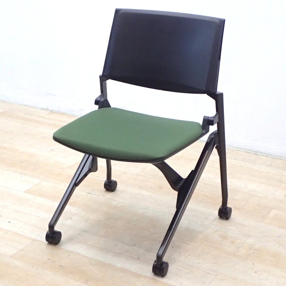 - 【SALE】カムラ ルナ 81S1AY ミーティングチェア グリーン ネスティングチェア EG18859 中古 配送サイズ220