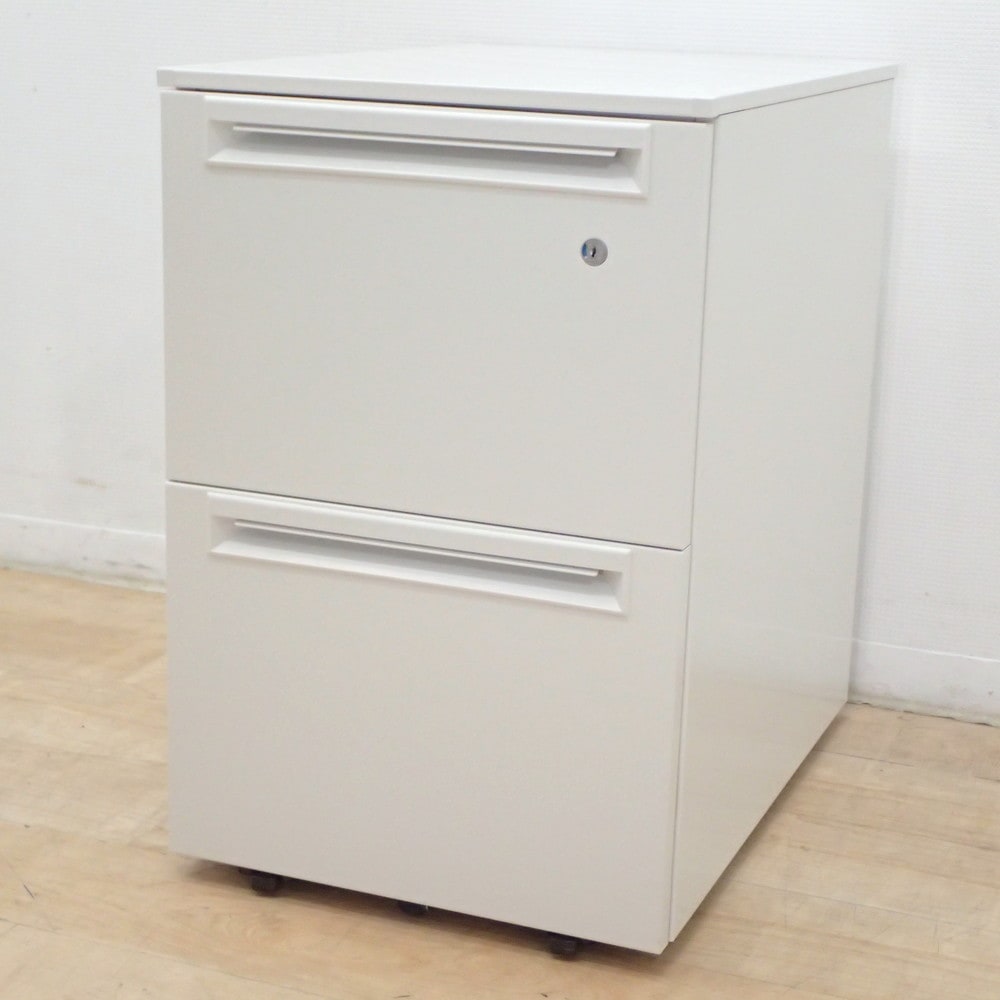 - 【SALE】2段デスクワゴン ホワイト 2段サイドキャビネット YH16024 中古 配送サイズ180