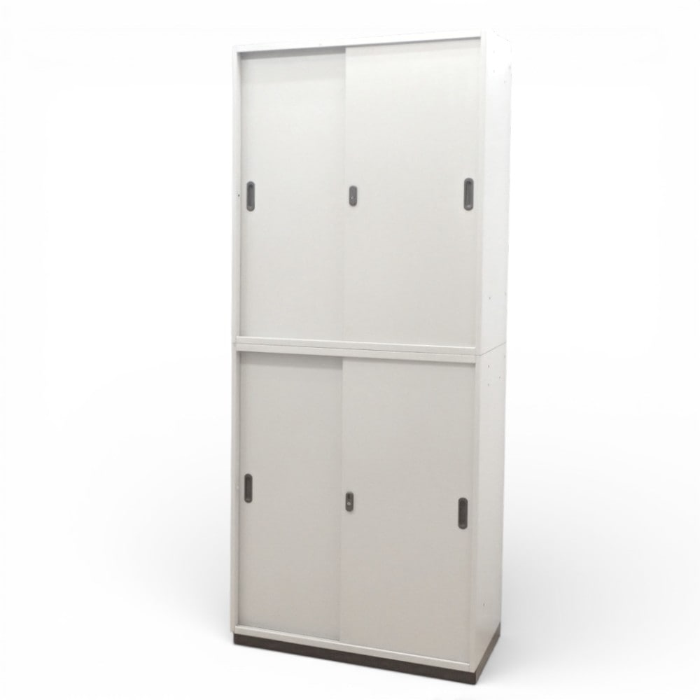 - SOLD OUT 【SALE】オカムラ ビラージュ 上下書庫セット 引き違い/ 両開き ホワイト スチールキャビネット W800 D400 H2150 中古 AG19258 配送サイズ300×2