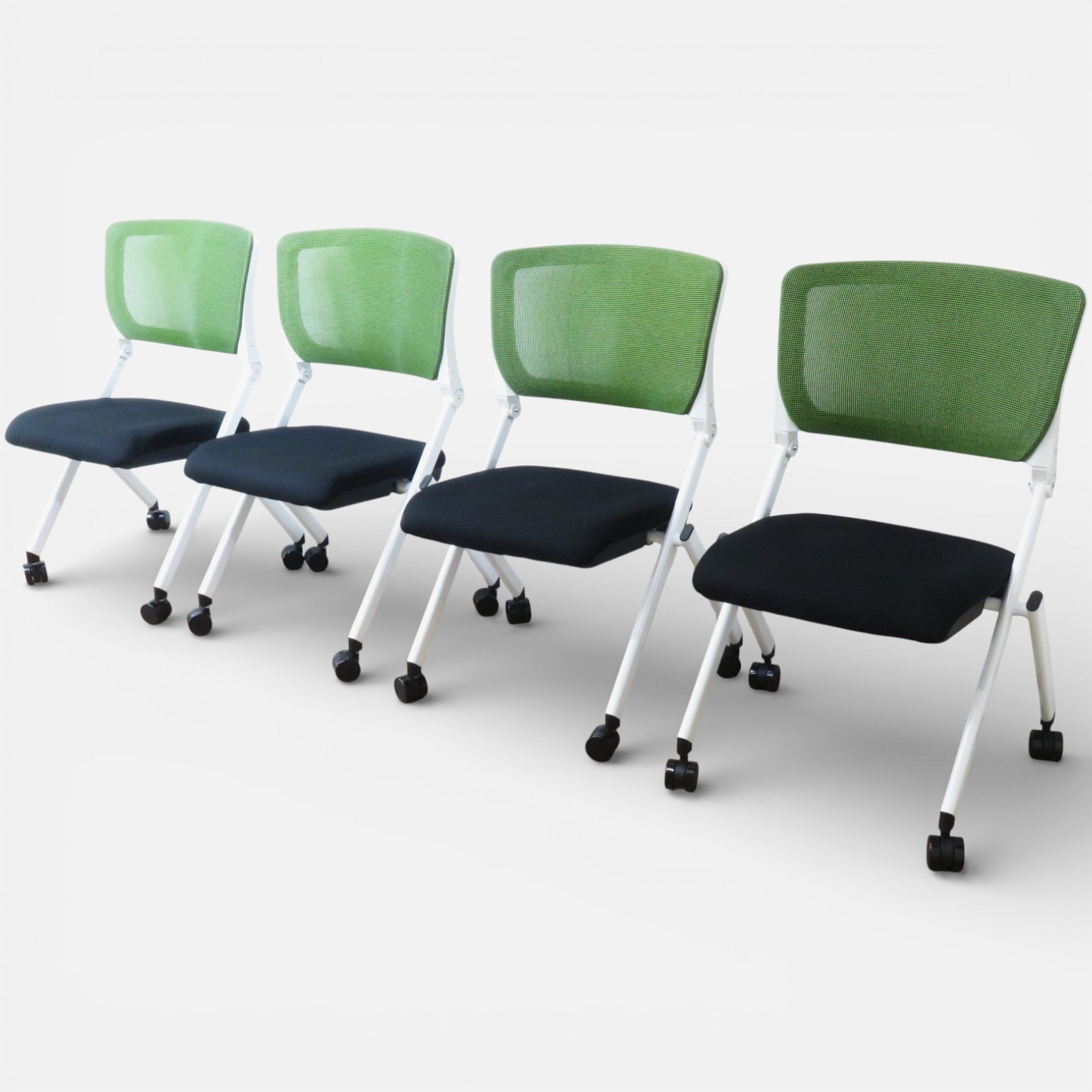 KOEKIのネスティングチェア KRM-430シリーズ 4脚セット! お色味はグリーンです。 背もたれのメッシュ生地の通気性と樹脂成型の座面により、長時間の着座も快適! もたれかかると背もたれが動きに合わせて最大20度リクライニング! まさにリラックスした態勢をムリなく維持できるミーティングチェアです。 快適な会議シーンのために導入してみてはいかがでしょうか? |
