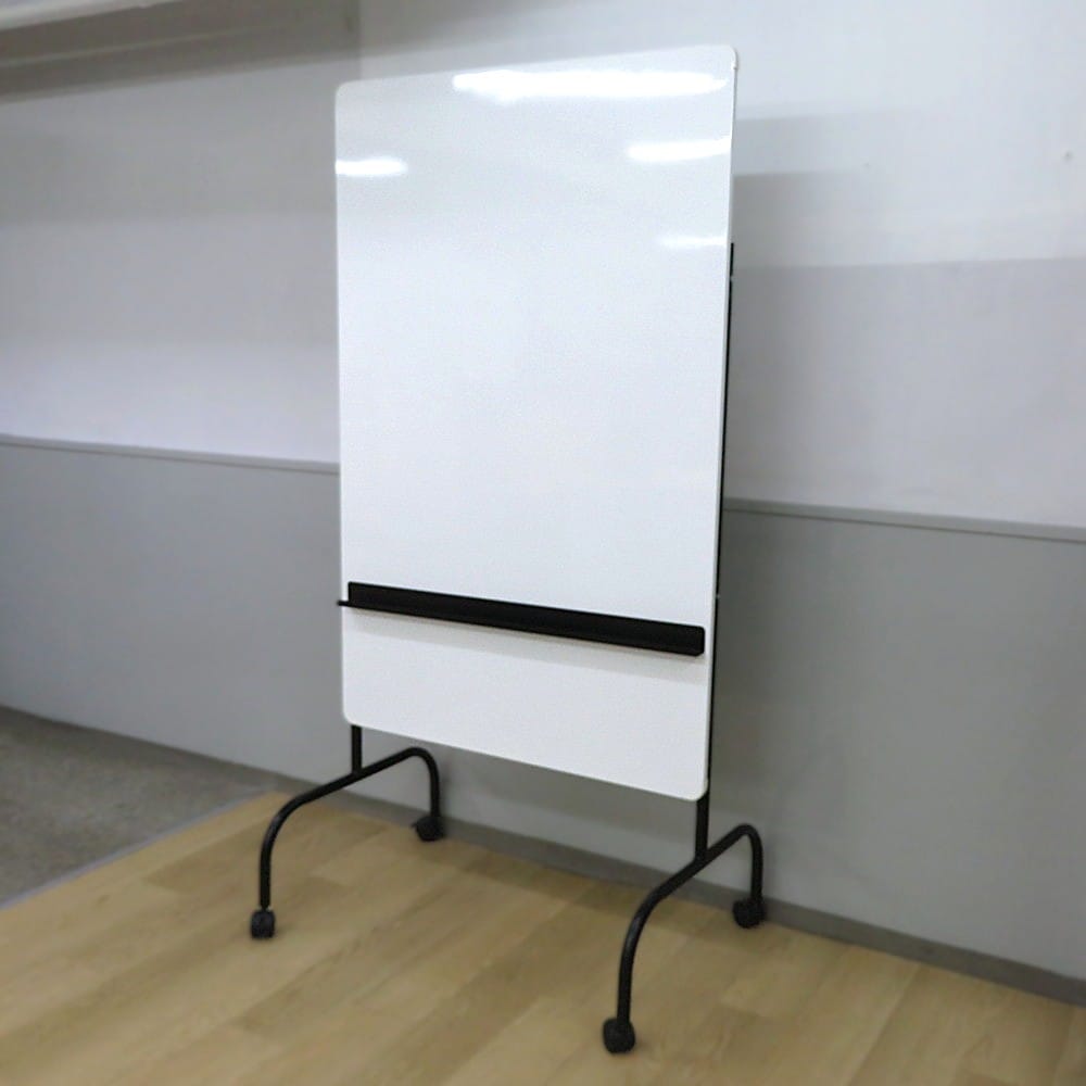 自立式ホワイトボードが入荷いたしました。 一般的なホワイトボードと比べ、より空間になじみやすいノーフレーム仕上げ。 白い板面に映える粉受けは、マグネット式なのでお好みの位置に取り付け可能。 丸みを帯びた脚部が、スッキリとしたデザインにやわらかな印象をプラス。 マグネットを使用して、プリントやメモを提示したりと用途は色々。 事務やスクール等にぜひいかがでしょうか! |
