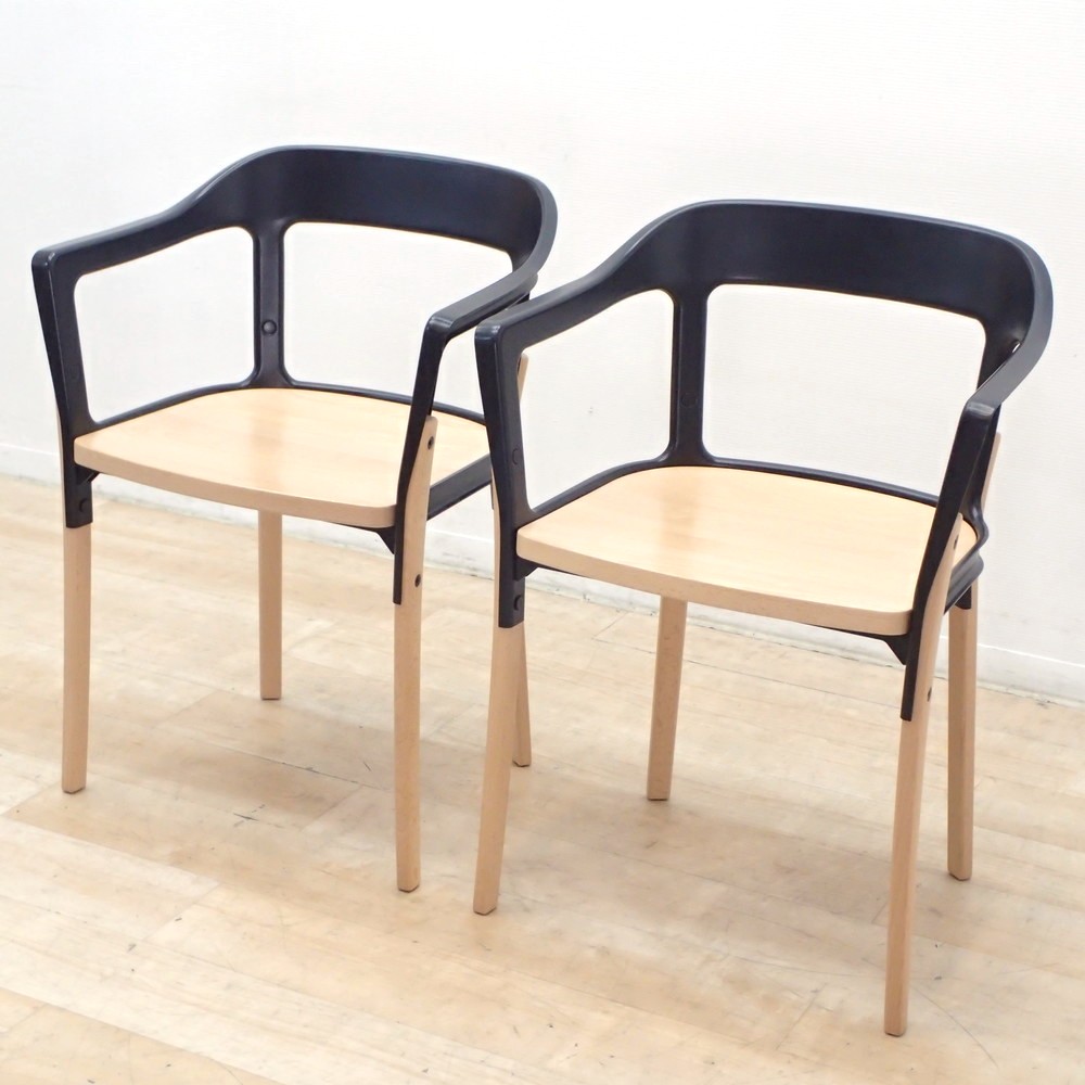 2脚セット マジス スティールウッドチェア SD750 ミーティングチェア ブラック ナチュラル 肘付 ビーチ材 デザイナーズ KK19334 EG19334 中古 配送サイズ200 セット販売