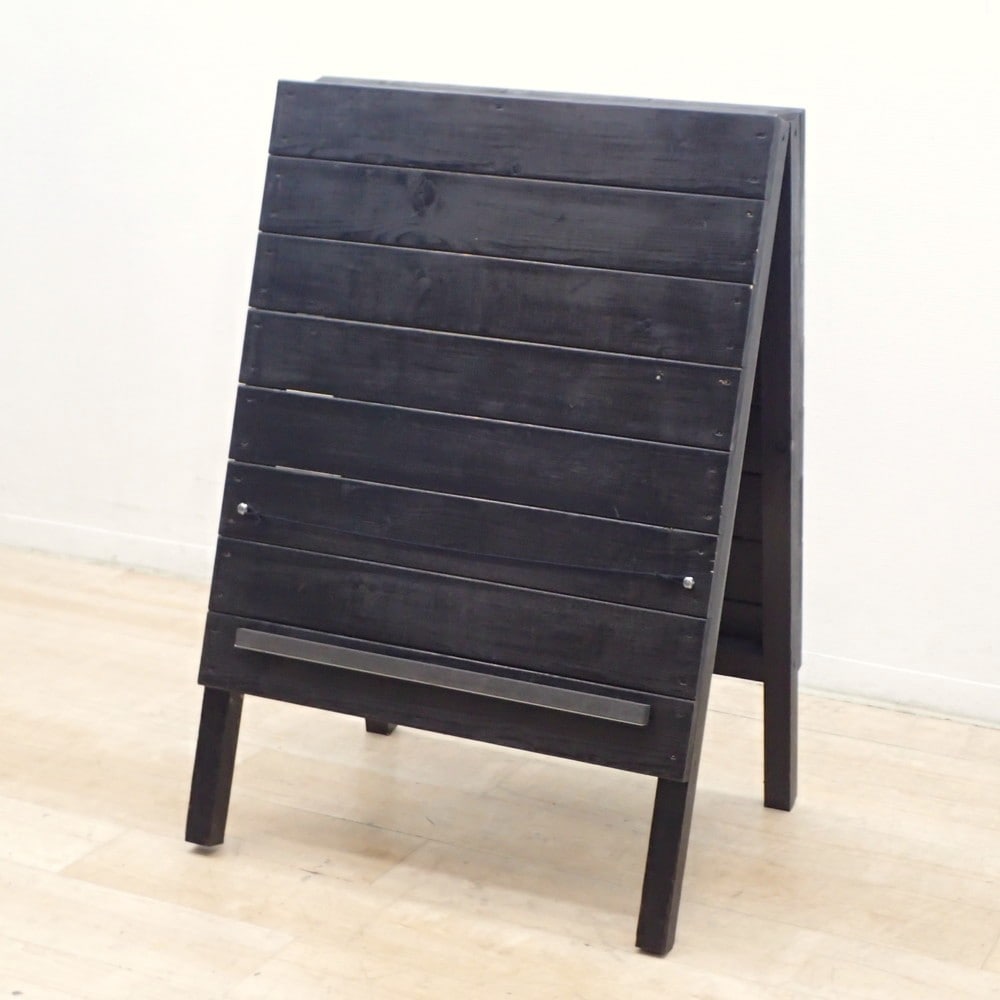 折り畳み看板 ブラック ウッド A型看板 W600 D490 H890 スタンド看板 立て看板 ウッドサインボード 木製 KK19347 中古 配送サイズ180