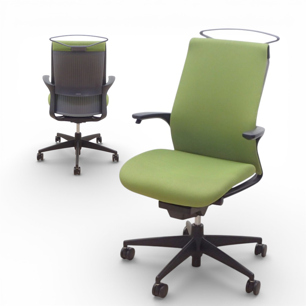 - コクヨ オフィスチェア ミトラ CRSG2900E6N ライトグリーン 肘付き メッシュ リクライニング 中古 EG19922-1 配送サイズ250