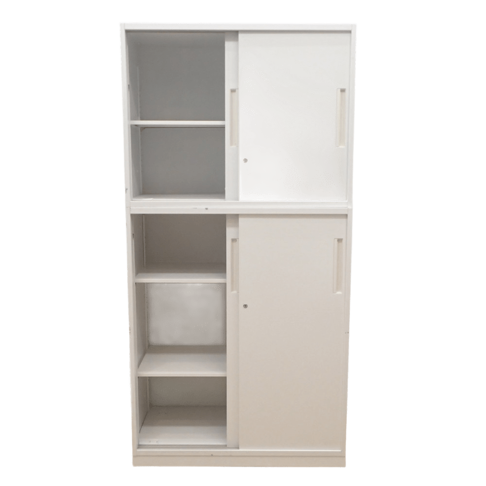 - SOLD OUT 【SALE】オカムラ ビラージュ 上下書庫セット 引き違い/ 両開き ホワイト スチールキャビネット W800 D400 H2150 中古 AG19258 配送サイズ300×2