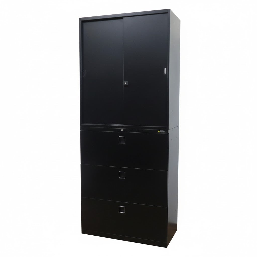 - SOLD OUT 【中古】井上金庫 ICシリーズ 上下書庫セット ブラック 両開き+3段ラテラル W900 中古オフィス家具 EG20376 YH20376