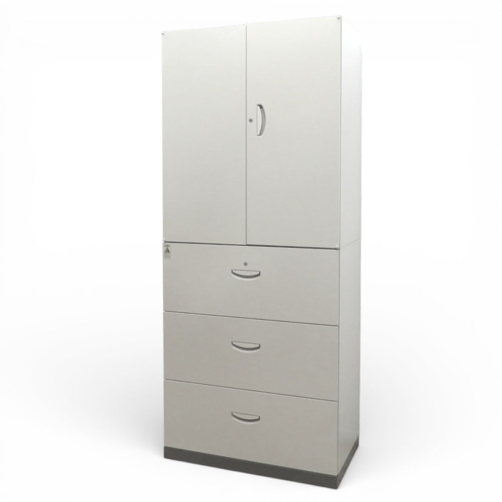 - 【SALE】オカムラ SAデュオライン 上下書庫(両開き書庫+3段ラテラル) 4B3SZZ ZA75/4B3SZC ZA75 ホワイト スチールキャビネット YH18697 中古 配送サイズ300×2