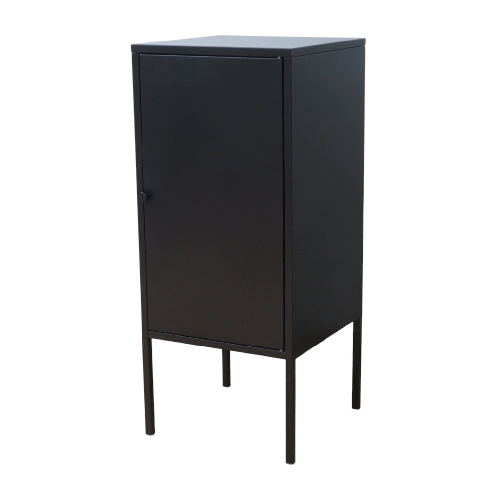IKEA(イケア)のスチール製キャビネットです。 マットブラックのシンプルなデザインで、リビング・寝室・書斎・玄関など幅広い空間に合わせやすい収納家具です。 脚付き仕様のため床との間に空間があり、見た目がすっきりしているのもポイント。 扉付きなので生活感を隠しながら収納できます。 中古品ではありますが、細かい傷もほとんど見られず、全体的にとてもきれいな美品コンディションです。 |