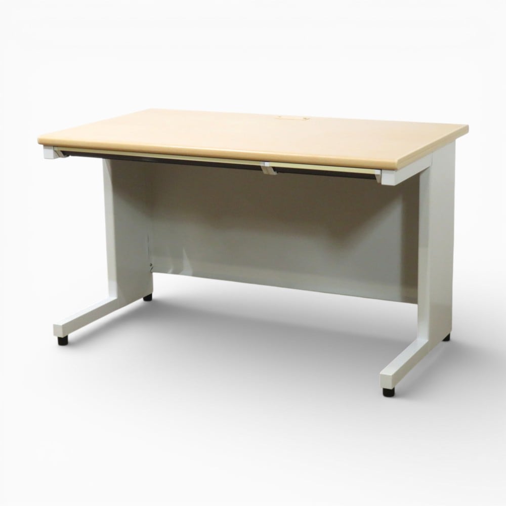 - ナイキ NHT-127 平デスク ナチュラル/ホワイト W1200 L字脚 配線口 中古 YH19799 配送サイズ300