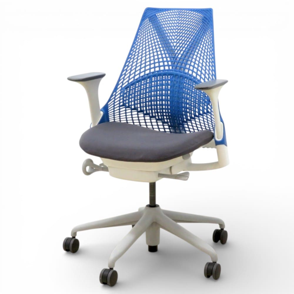 【中古】ハーマンミラー セイルチェア オフィスチェア AS1YA23HA-0477 ブルー/グレー 肘付き アジャストアーム ミドルバック メッシュ 中古オフィス家具 KK20894-1