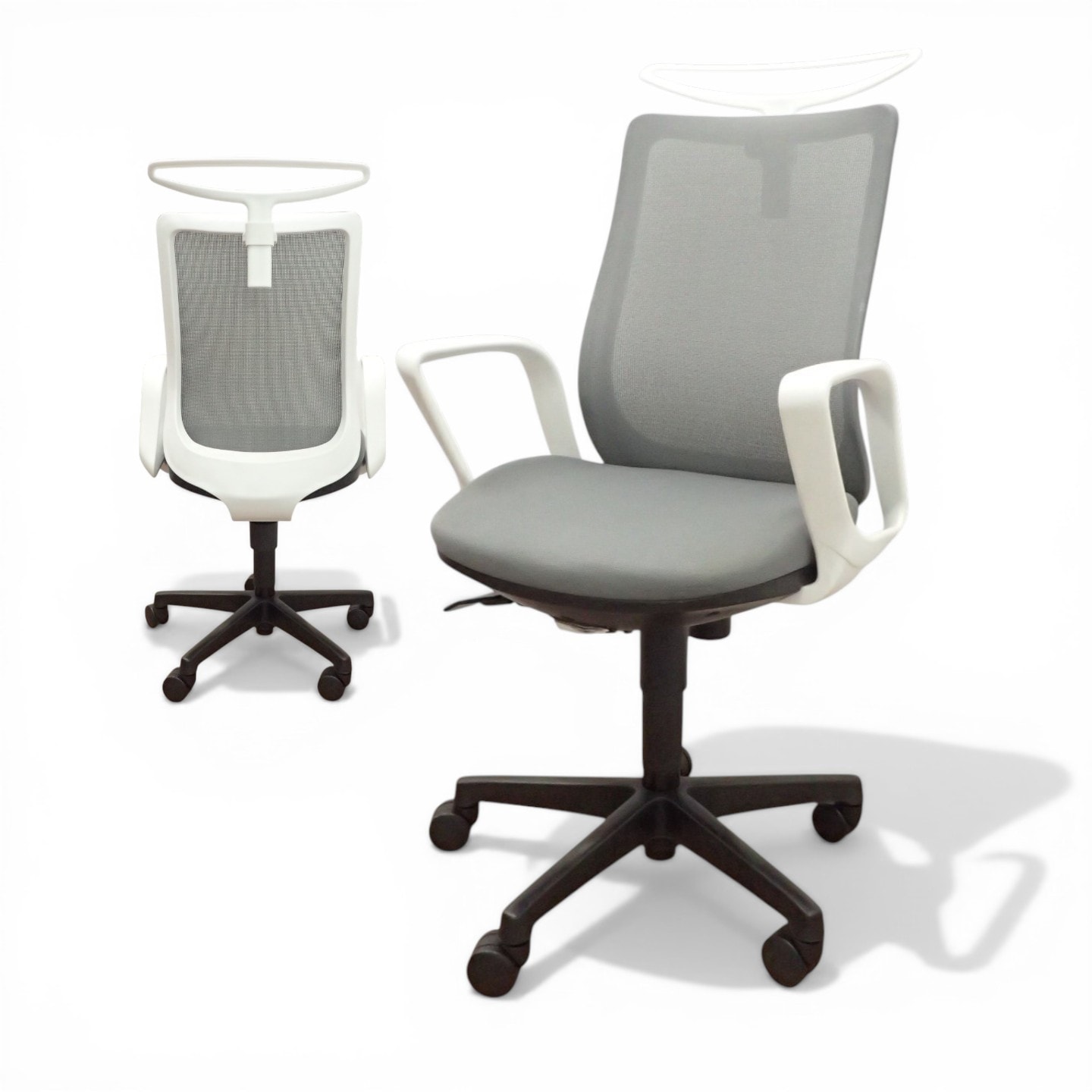 - 【中古】ニトリ オフィスチェア カーデ 肘付き 6620719 ホワイト/グレー 事務椅子 デザインチェア 中古オフィス家具 YH19867